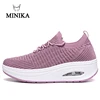 Minika Women Slimming Shoes Fly Wire Air Slip-on Sneakers 2019 New Wedge Height Increasing Female Toning Swing Shoes