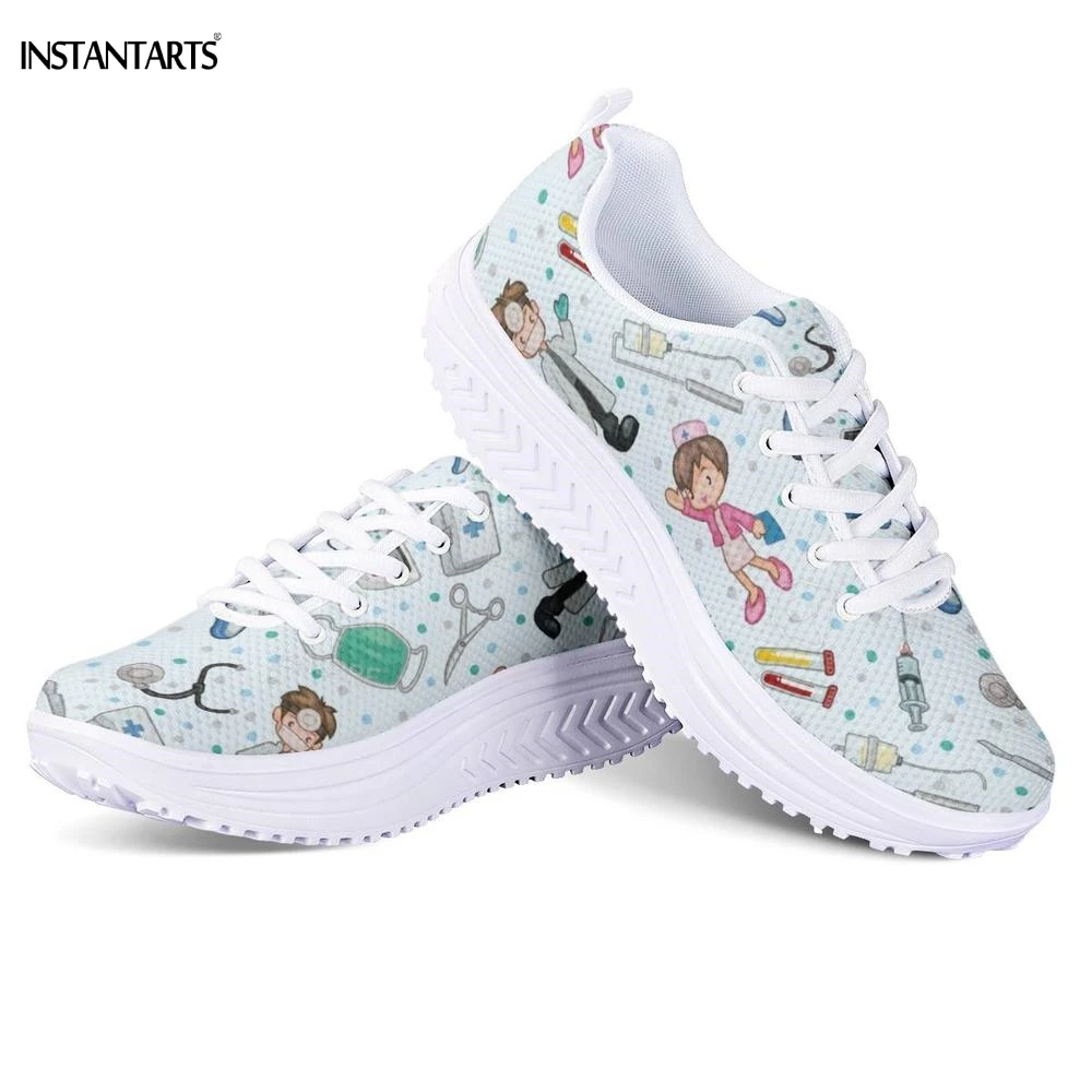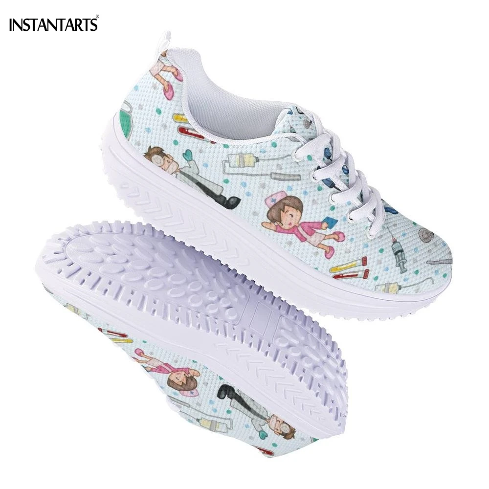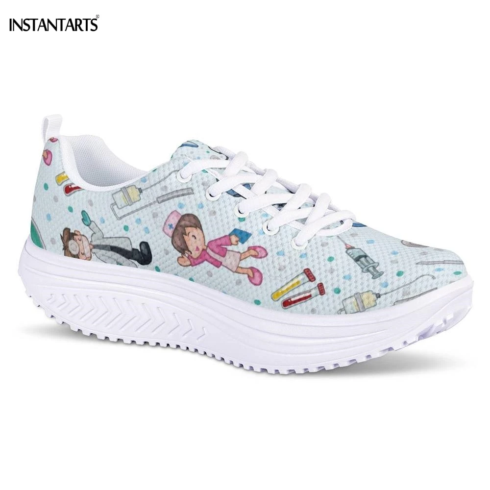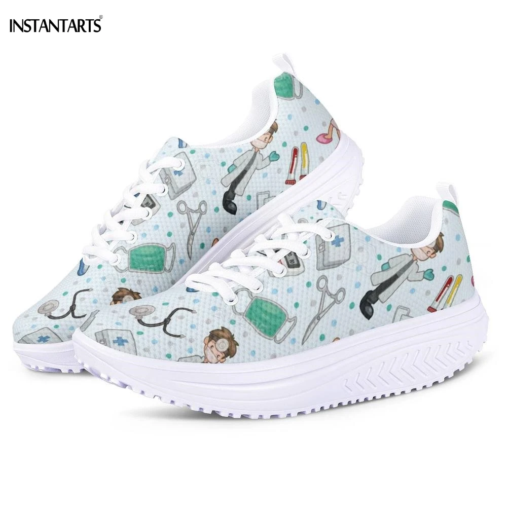 INSTANTARTS Cute Cartoon Nurse/Doctor Pattern Women Summer Sports Fitness Shoes Outdoor Slimming Sneakers Platform Wedge Shoes