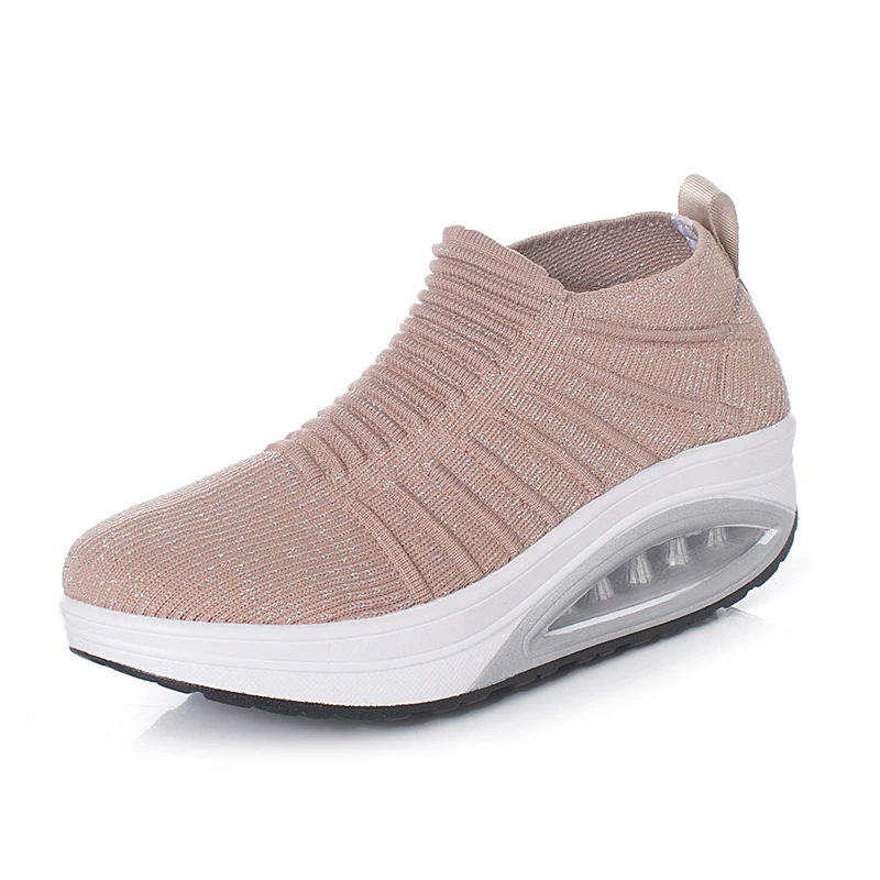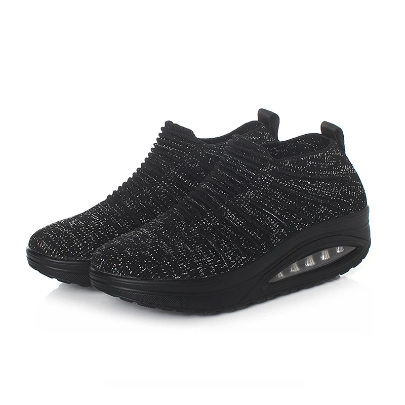 Women Slimming Shoes Outdoor Sport Ladies Fly Wire Breathable Slip-on Sneakers Wedge Female Toning Swing Shoes Walking Flat