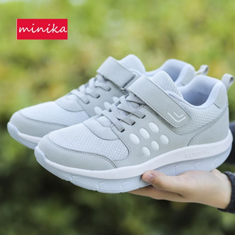 Women Toning Shoes Hook&Loop Soft Sole Sneakers Women 2018 New Anti-slip Wedge Swing Shoes Mesh Breathable Slimming Shoes Women