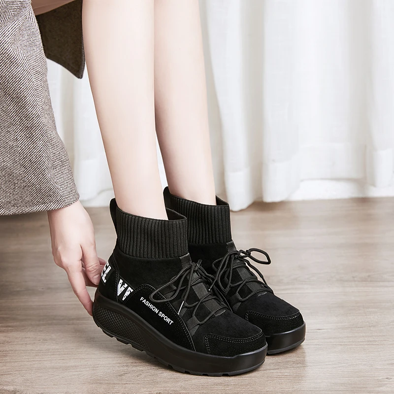 2020 High Top Spring Shake Toning Shoes Women Platform Shoes Mujer Shoes Wedge Height Increasing Female Toning Swing Shoes