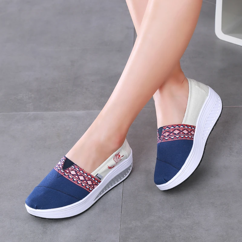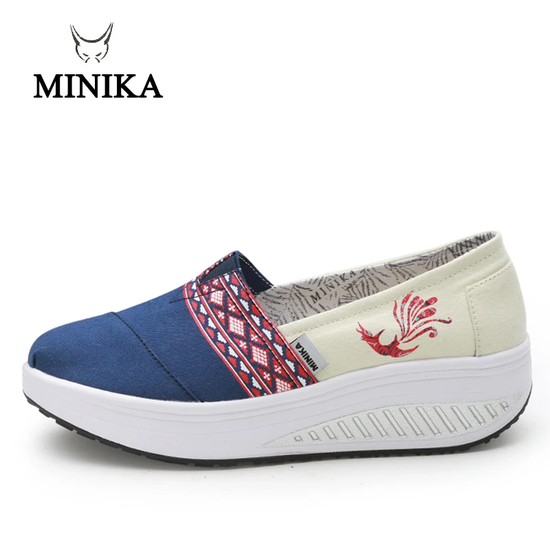 2019 Minika Swing Shoes Canvas Breathable Ladies Trainers Wedges Chaussure Femme Sport Platform Shoes For Women Zapatos Mujer
