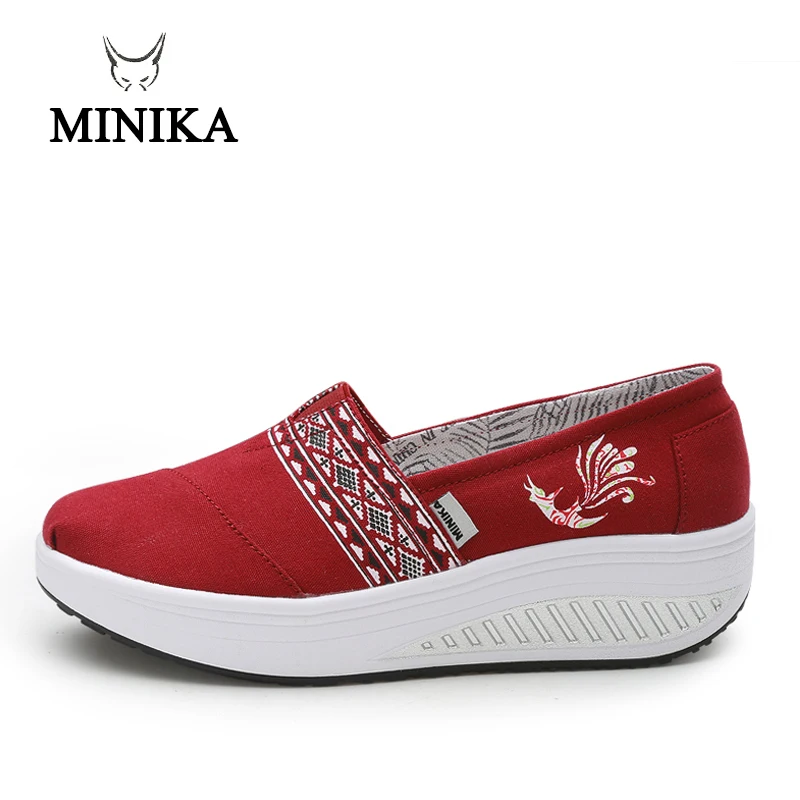2019 Minika Swing Shoes Canvas Breathable Ladies Trainers Wedges Chaussure Femme Sport Platform Shoes For Women Zapatos MujerBuy Now On Aliexpress