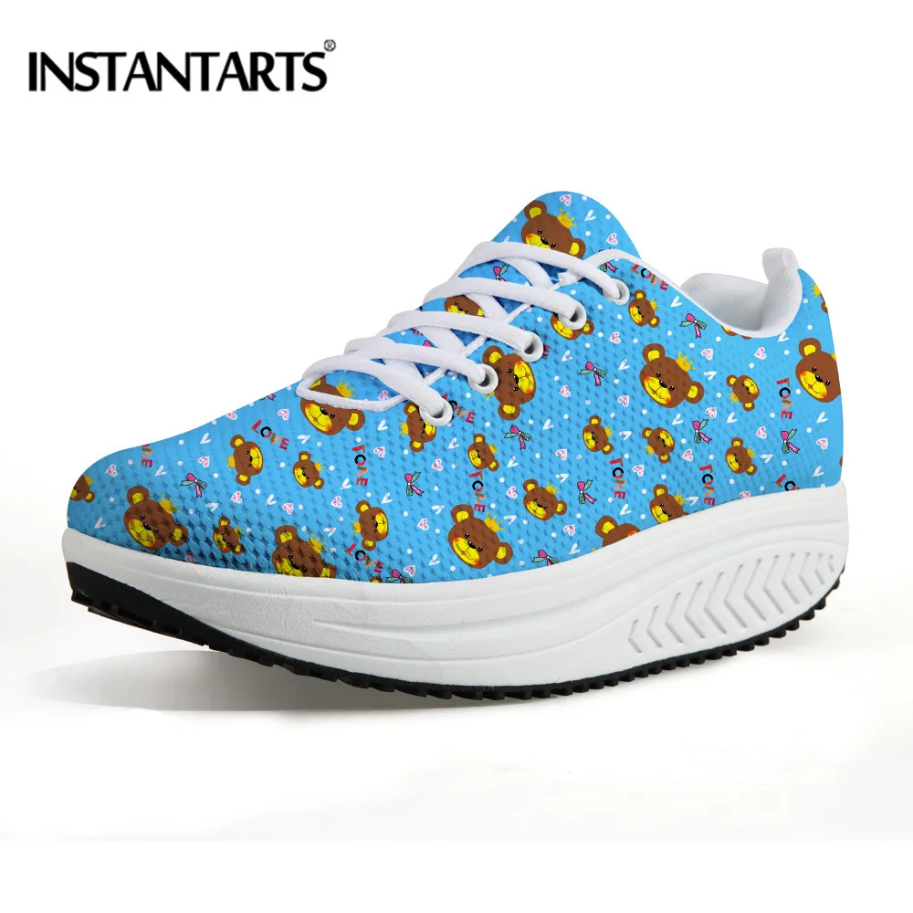 INSTANTARTS Cute Cartoon Bear Printing Toning Shoes Women Sports Fitness Shoes Platform Wedge Sneakers Body Shaping Swing Shoes