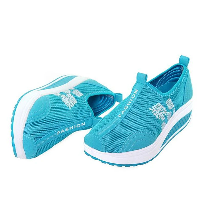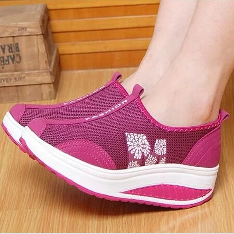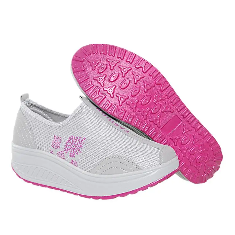 Breathable Women Toning Shoes Flower Printed Comfortable Thick Soles Heighten Swing Shoes Platform Wedge SneakersBuy Now On Aliexpress