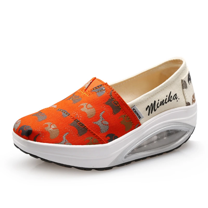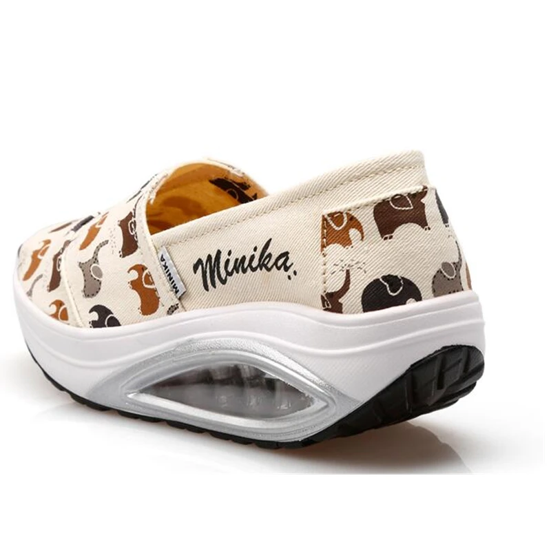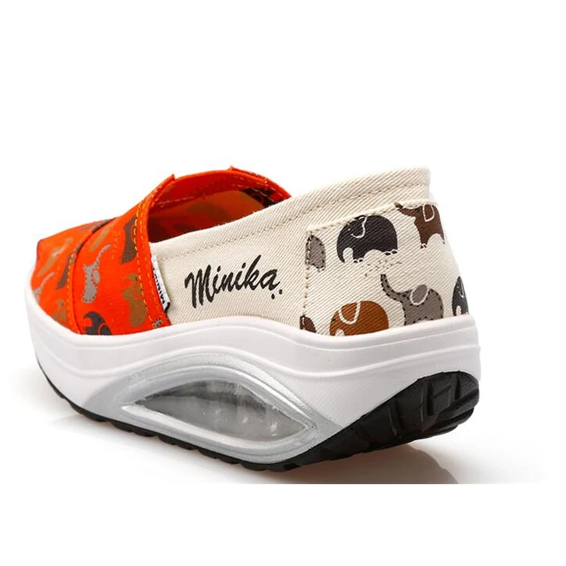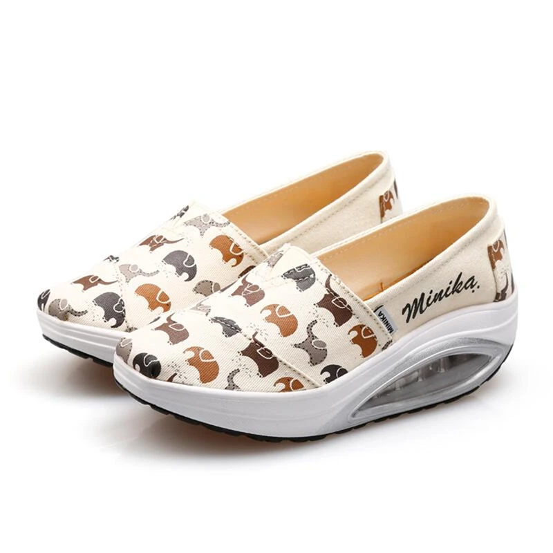 Autumn Canvas Thick Soles Women Toning Shoes Height Increasing Breathable Slimming Swing Shoes Elephant Pattern Lazy Shoes