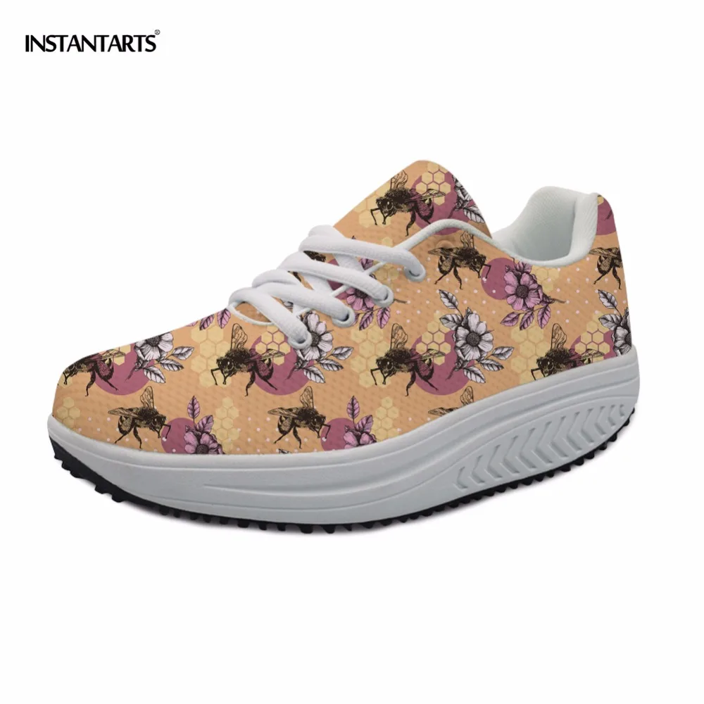 INSTANTARTS Women Toning Wedge Shoes Lady Lose Weight Sneakers Bee Mine Printing Body Shaping Fitness Slimming Swing Sport Shoes