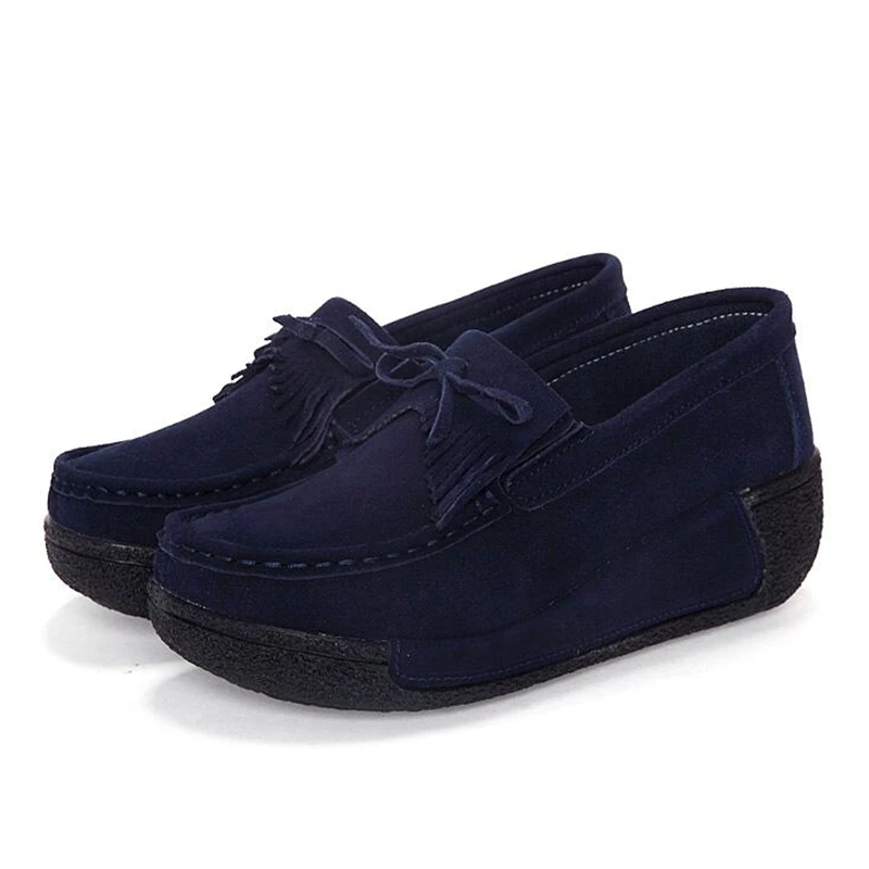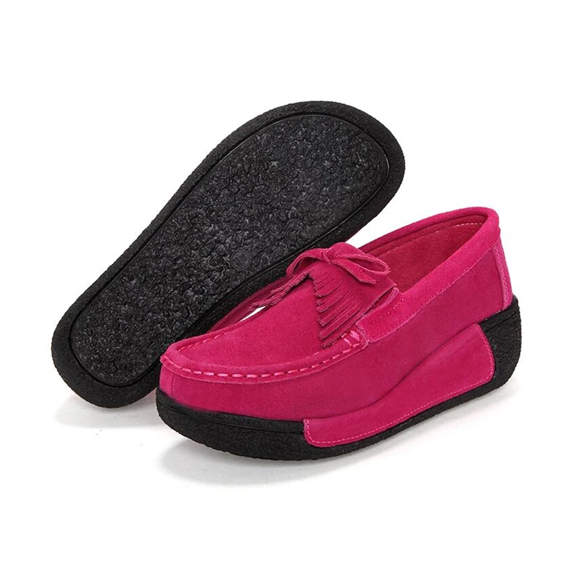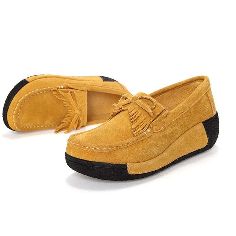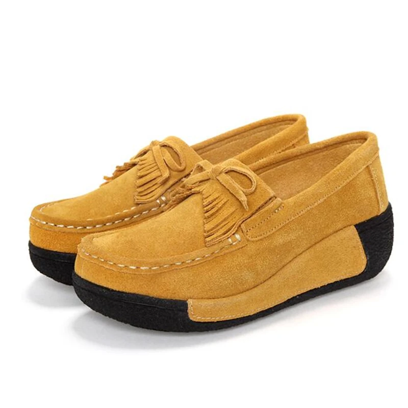 Leather Tassel Women Toning Shoes Height Increasing Swing Shoes Thick Soles Wedge Slimming Shoes Spring Autumn Women Lazy Shoes