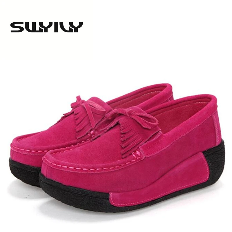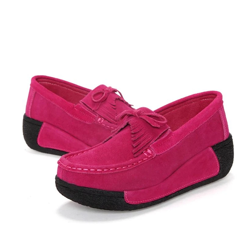 Best Price Comparison With Leather Tassel Women Toning Shoes Height Increasing Swing Shoes Thick Soles Wedge Slimming Shoes Spring Autumn Women Lazy Shoes