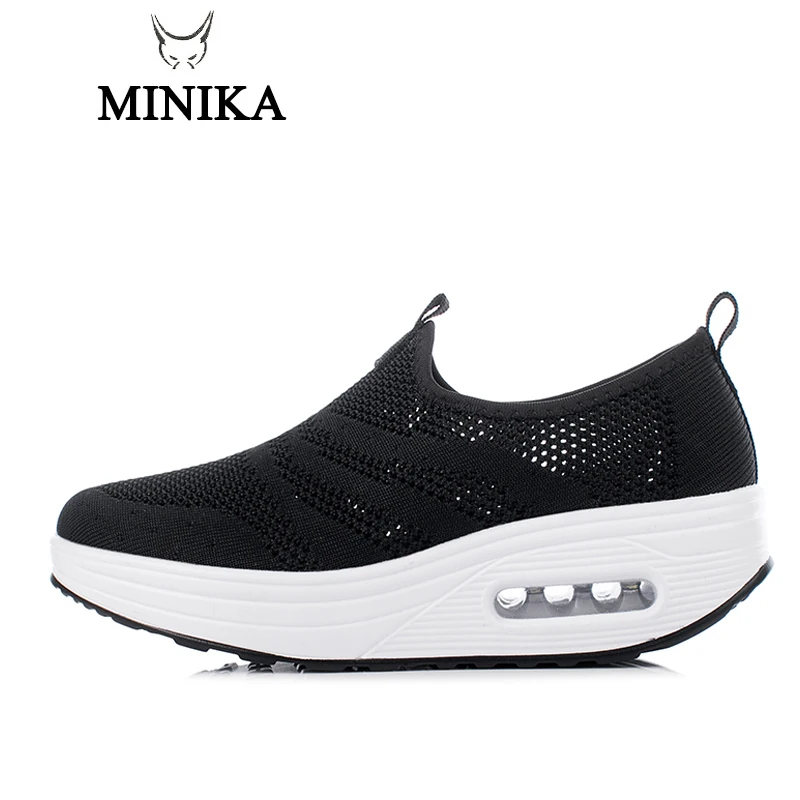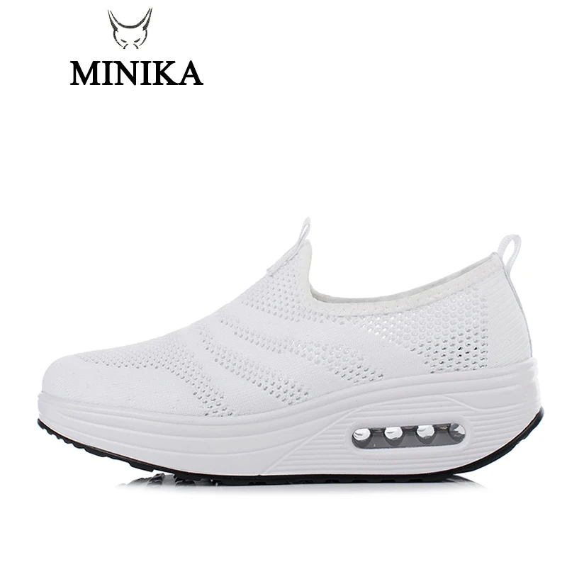 Minika Slimming Shoes Women Summer Breathable Slip On Sport Shoes Female Fitness Swing Platform Wedge Shoes Lady Walking Sneaker