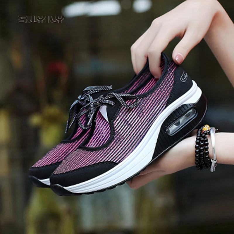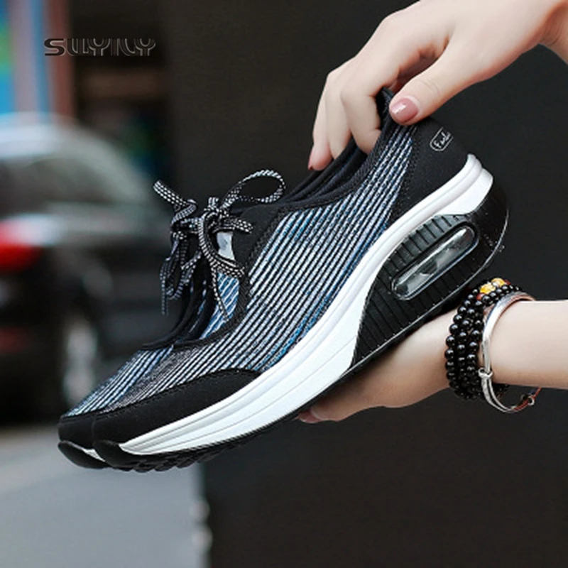 SWYIVY Women Toning Shoes Platform Mesh Breaathable Lace-up Swing Shoes 2018 Height Increasing Female Slimming Shoes Mixed Color