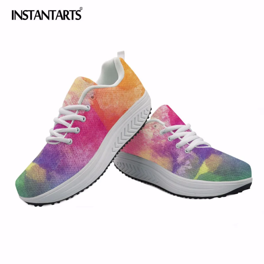 INSTANTARTS Colorful Print Women Sport Fitness Shoes Comfort Platform Wedge Swing Shoes Breathable Mesh Outdoor Toning Shoes