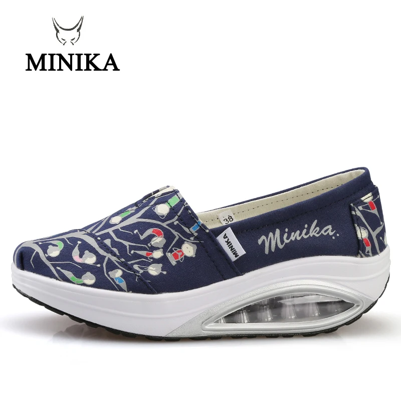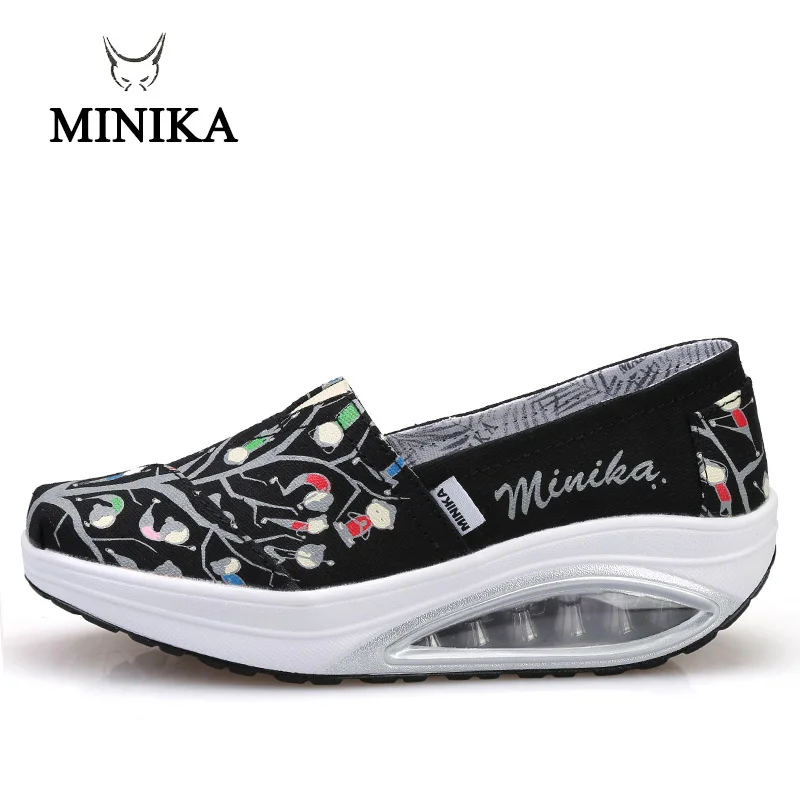 2019 Minika Fitness Shoes Women Sport Swing Wedges Platform Zapatos Mujer Canvas Trainers Loss Weight Feminino Toning Shoes