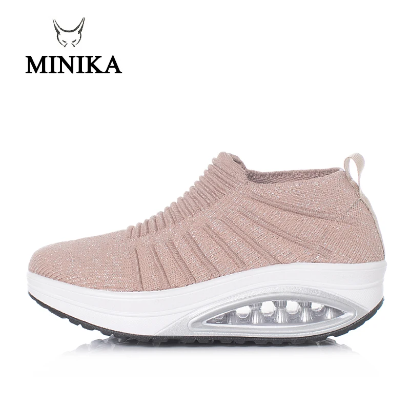 Minika New Pink Women's Sneakers Platform toning Wedge zapatillas sports shoes for women Swing Shoes Slimming Sneakers FitnessBuy Now On Aliexpress