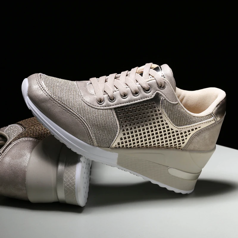 2020 New Womens Comfortable Walking Shoes High Heeled Wedge Sneakers Girls Ladies Lightweight Shiney Casual Sneakers Brand