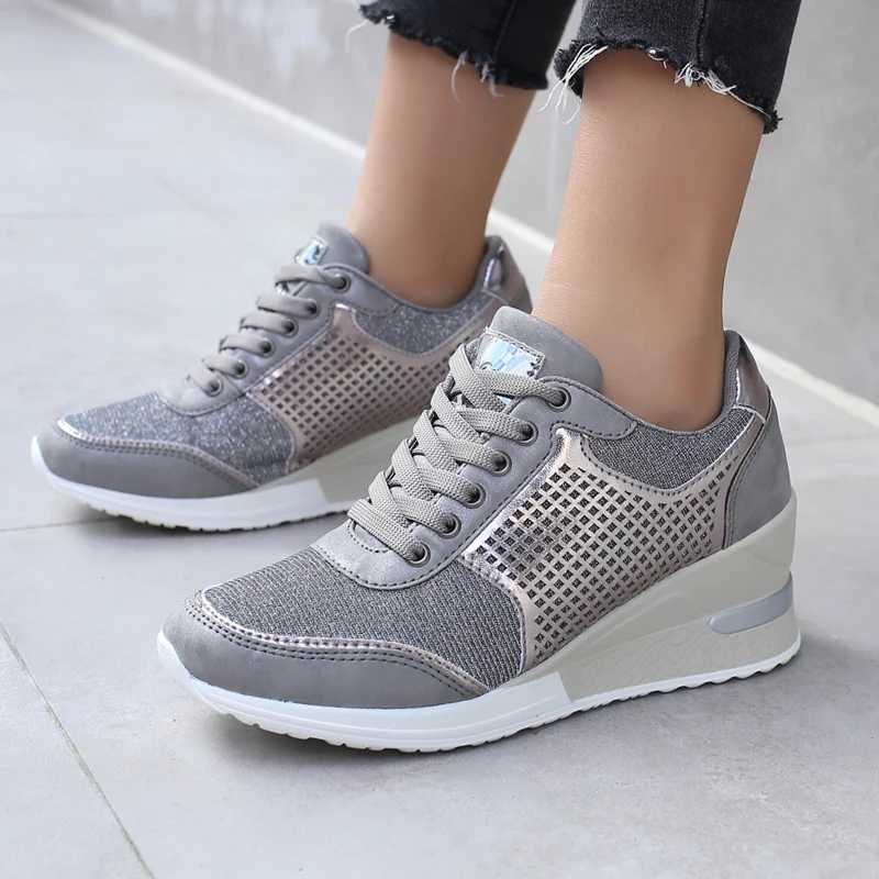 2020 New Womens Comfortable Walking Shoes High Heeled Wedge Sneakers Girls Ladies Lightweight Shiney Casual Sneakers BrandBuy Now On Aliexpress