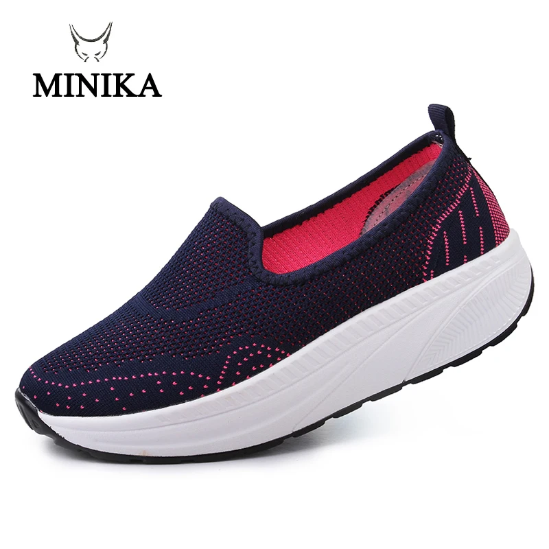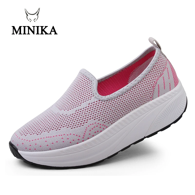 Minika Slimming Shoes Women Summer Breathable Slip On Sport Shoes Female Fitness Swing Platform Wedge Shoes Lady Walking Sneaker