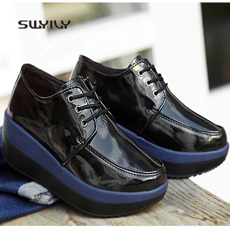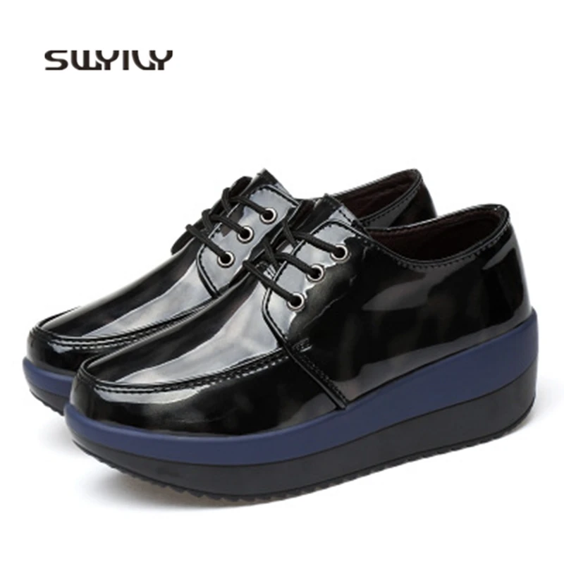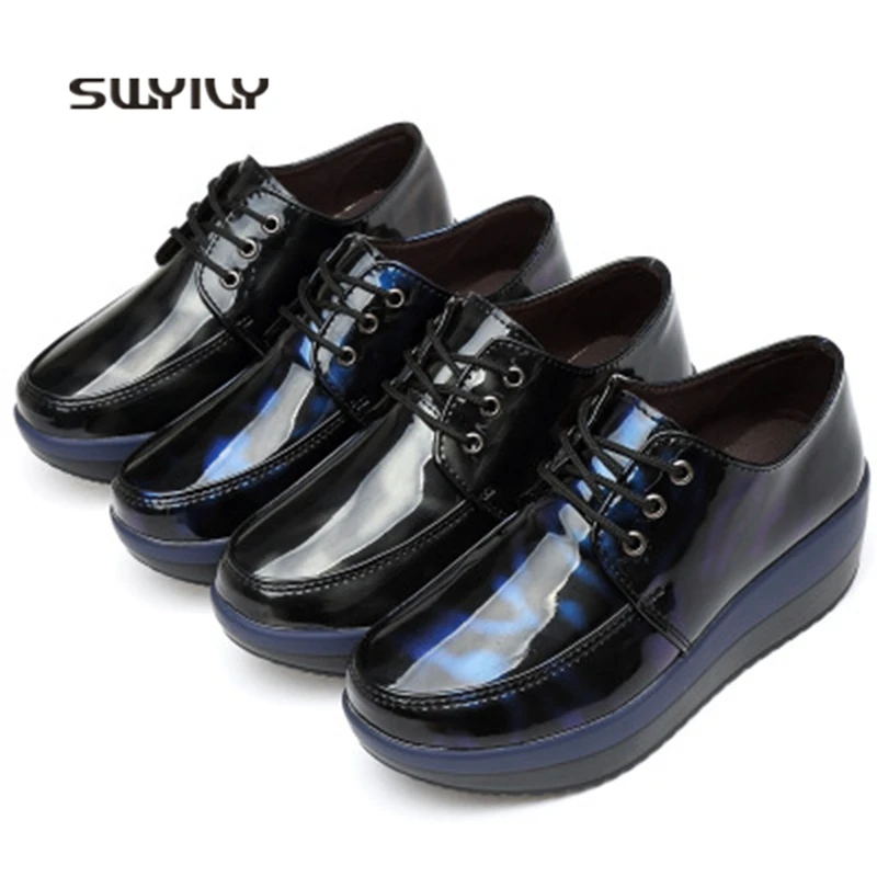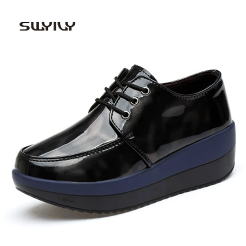 SWYIVY Women Swing Shoes Platform Patent Leather Toning Shoes Women 2018 New Autumn Height Increasing Light Weight Sneaker Women