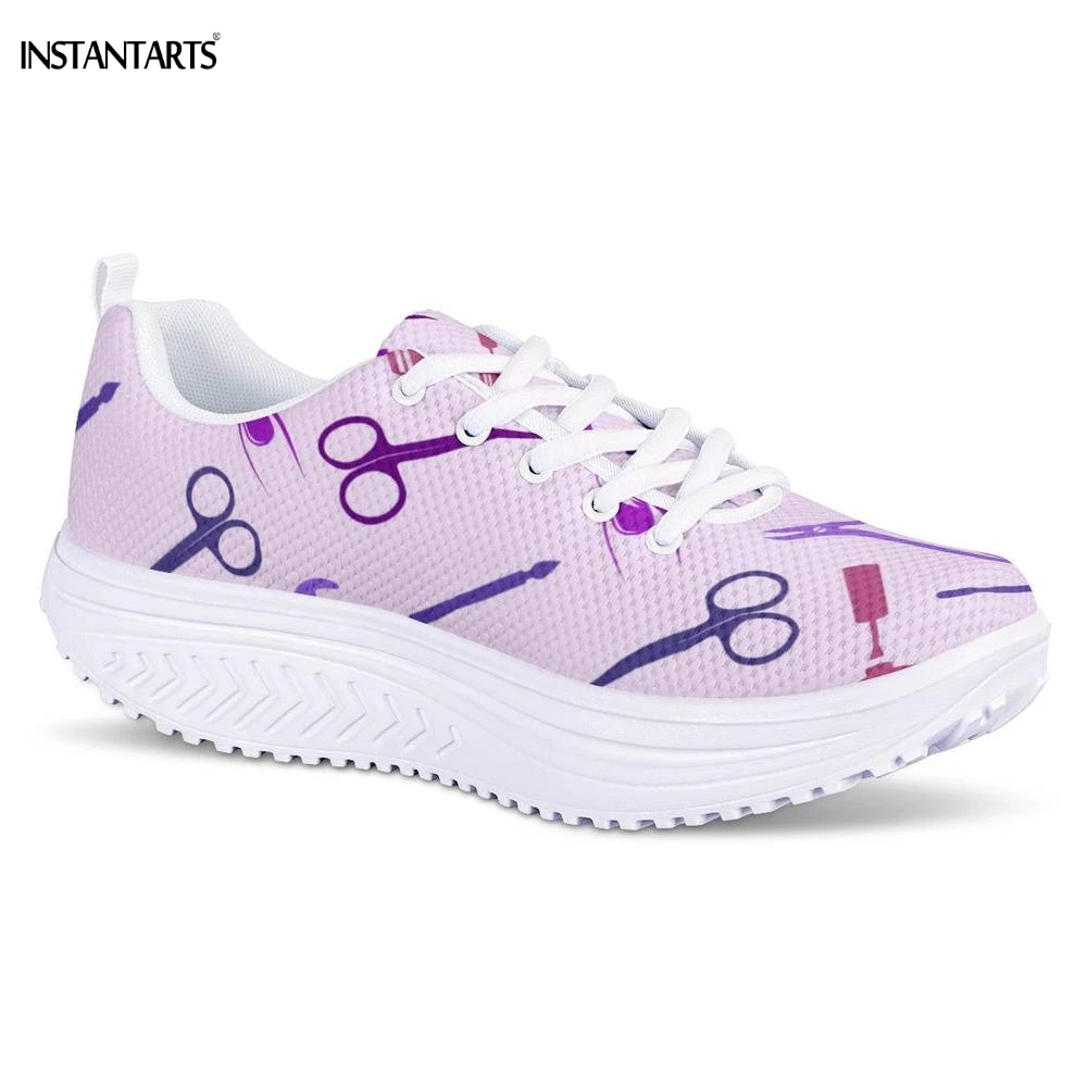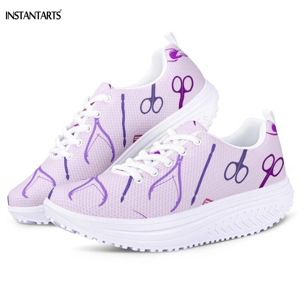 INSTANTARTS Workout Sport Slimming Shoes for Women Manicure Tools Print Height Increasing Fitness Swing Shoes Platform Sneakers