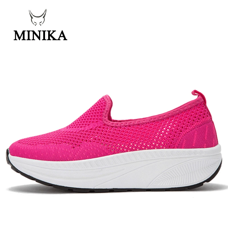 Minika Slimming Shoes Women Summer Breathable Slip On Sport Shoes Female Fitness Swing Platform Wedge Shoes Lady Walking Sneaker