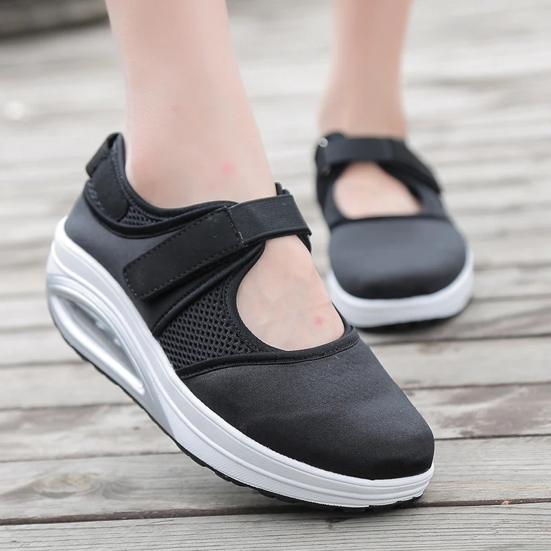 Spring Autumn Women Shoes Air Cushion Breathable Mesh Rocking Shoes Soft Slip On Wedge Platform Sneakers Heighten Slimming ShoesBuy Now On Aliexpress
