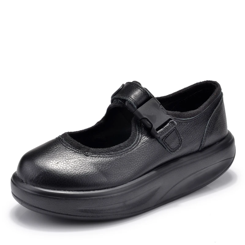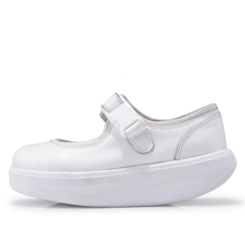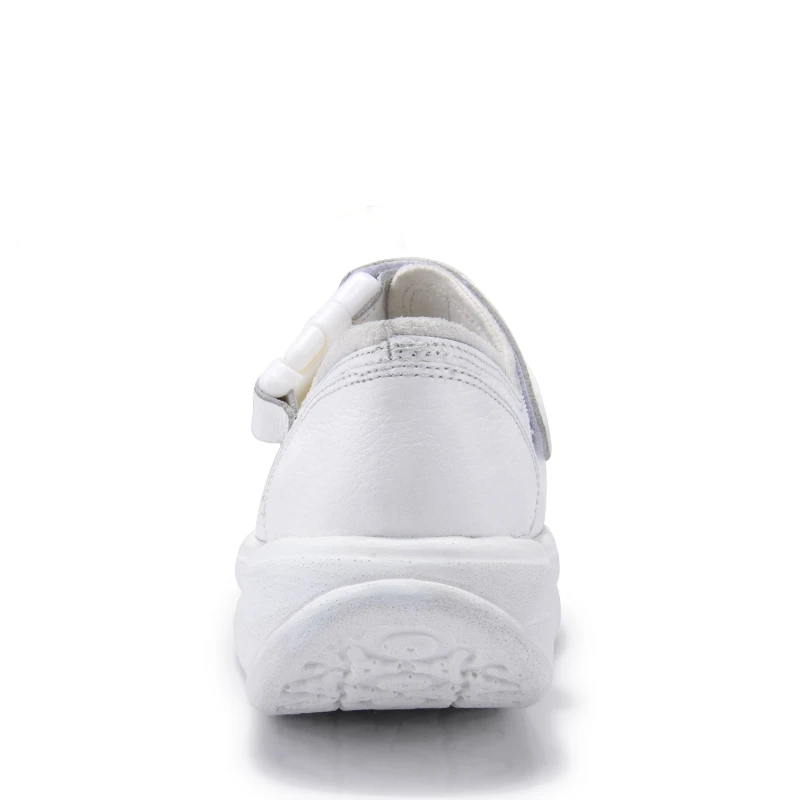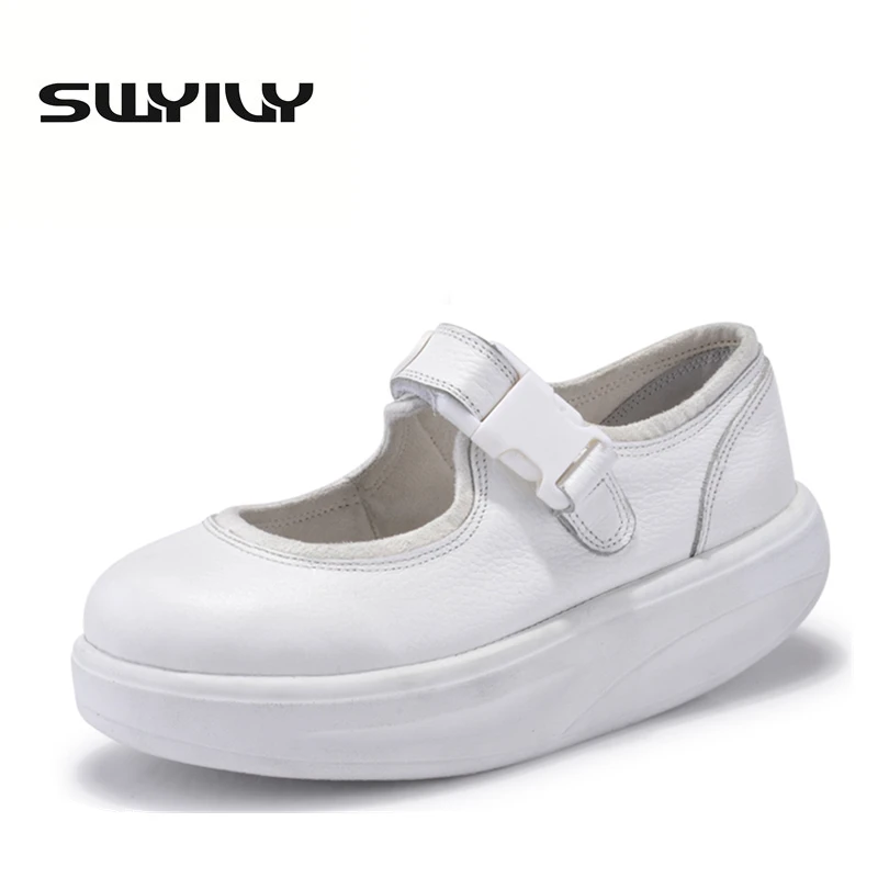 Genuine Leather 4.5CM Women Swing Shoes Thick Soles Wedge Toning Shoes Lacing Slimming Women Sneakers White Nurse Shoes