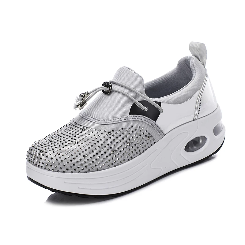 Grey Women Shoes Height Increasing 5 Cm Rocking Shoes Big Size 35-43 Wedge Sneakers Breathable Anti-slip Comfort Fitness ShoesBuy Now On Aliexpress