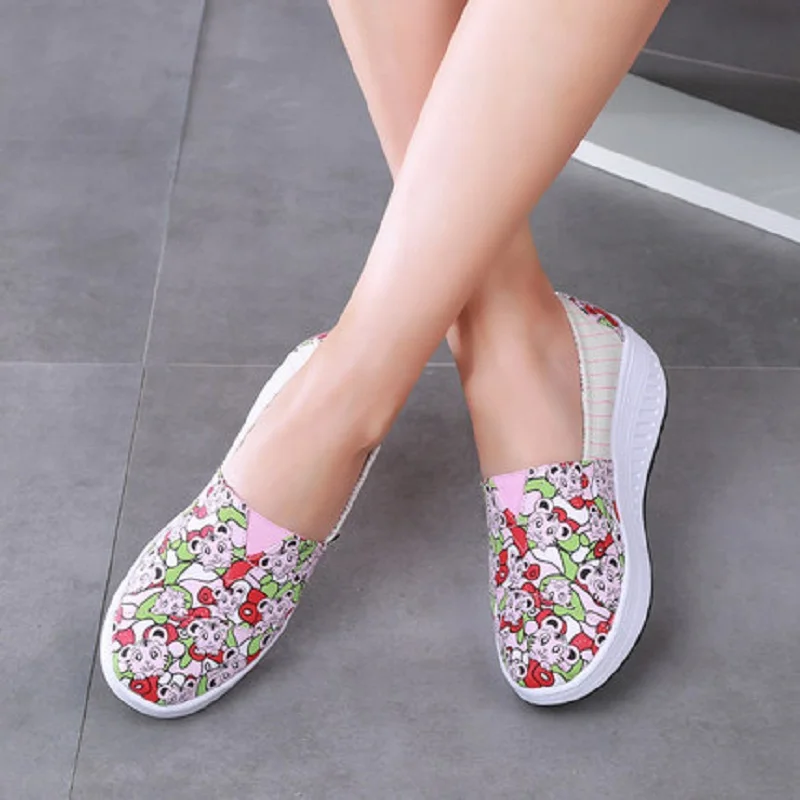 2019 Minika Swing Shoes Canvas Breathable Ladies Trainers Wedges Chaussure Femme Sport Platform Shoes For Women Zapatos Mujer