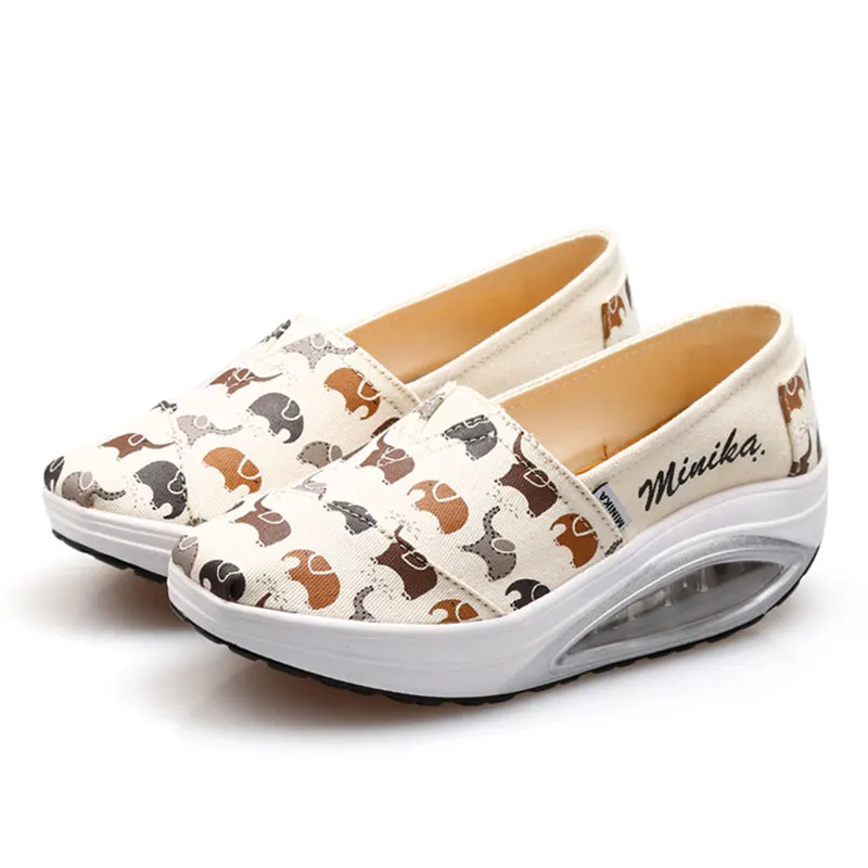Minika Women Girls Canvas Platform Shoes Printing Slip On Swing Shoes Fitness Height Increasing Toning Walking ShoesBuy Now On Aliexpress