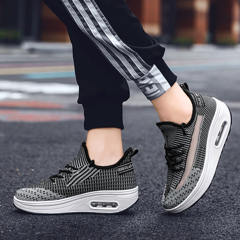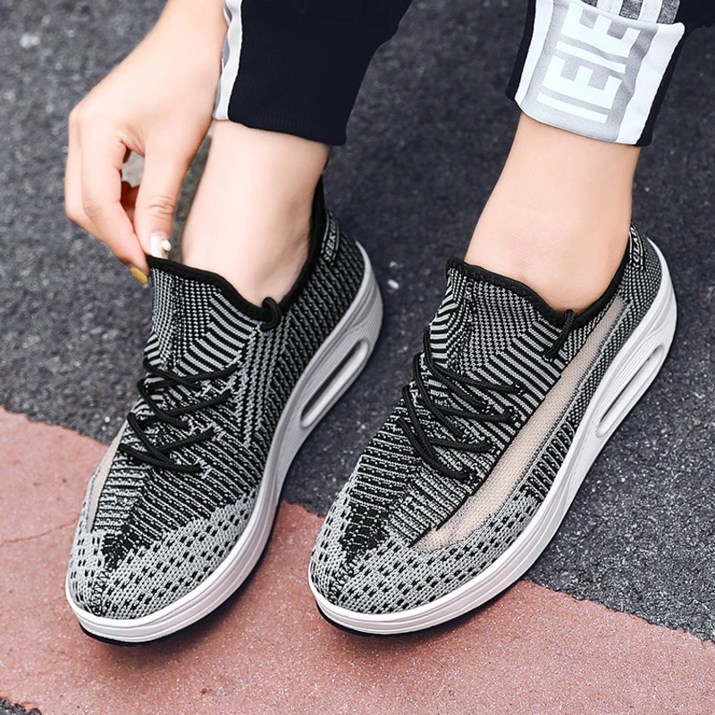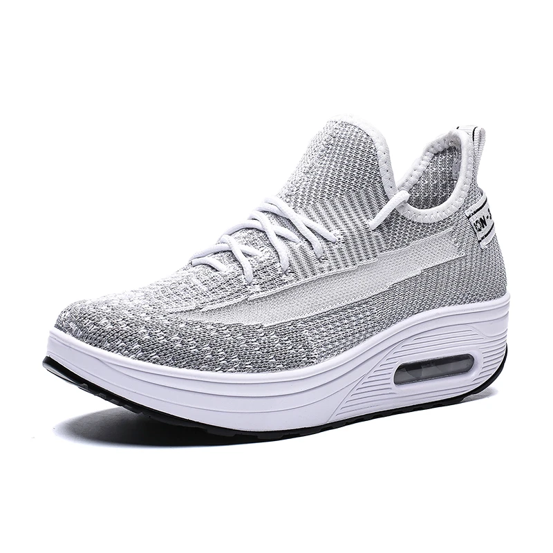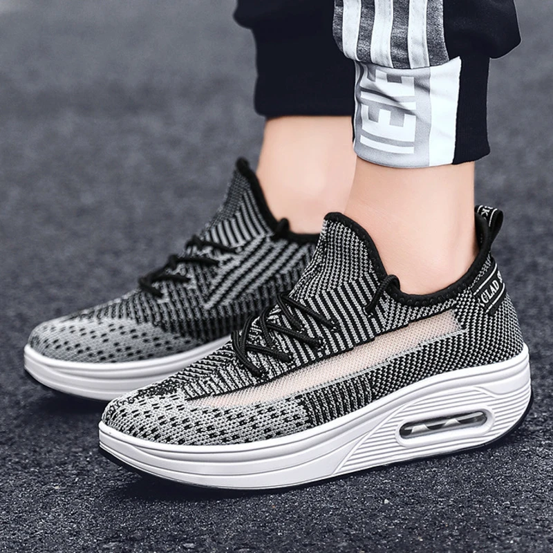 Grey Women Shoes Height Increasing 5 Cm Rocking Shoes Big Size 35-43 Wedge Sneakers Breathable Anti-slip Comfort Fitness ShoesBuy Now On Aliexpress