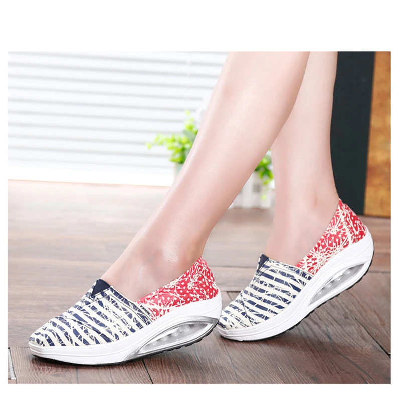 Breathable Women Toning Shoes Flower Printed Comfortable Thick Soles Heighten Swing Shoes Platform Wedge SneakersBuy Now On Aliexpress