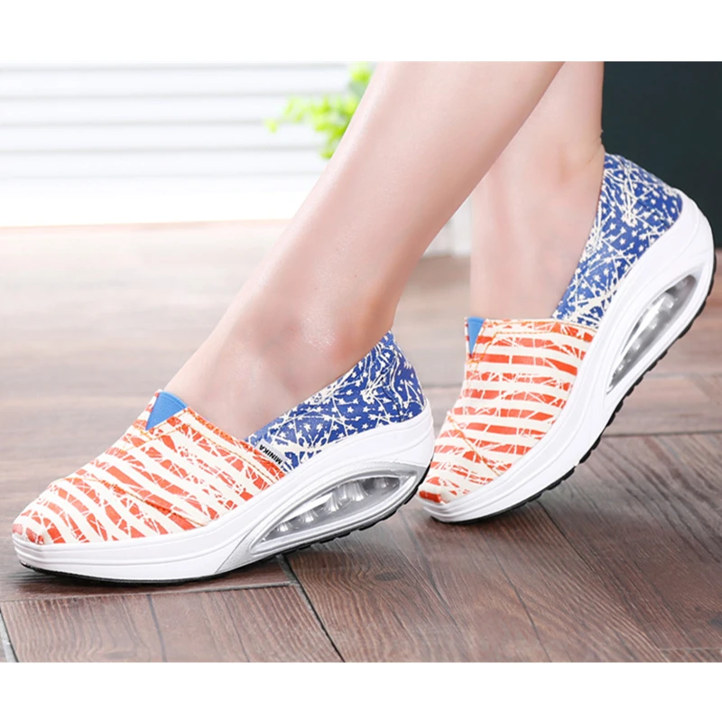 Minika Women Girls Canvas Platform Shoes Printing Slip On Swing Shoes Fitness Height Increasing Toning Walking ShoesBuy Now On Aliexpress