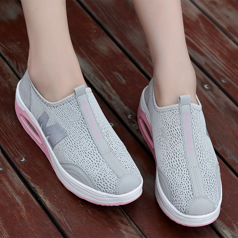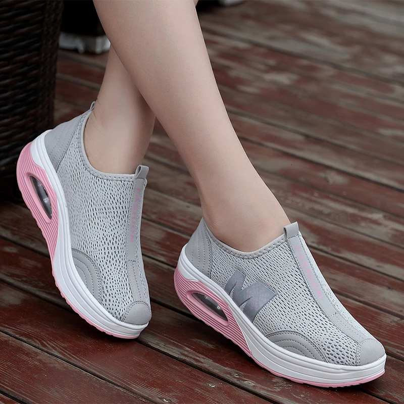 Spring Autumn Women Shoes Air Cushion Breathable Mesh Rocking Shoes Soft Slip On Wedge Platform Sneakers Heighten Slimming ShoesBuy Now On Aliexpress