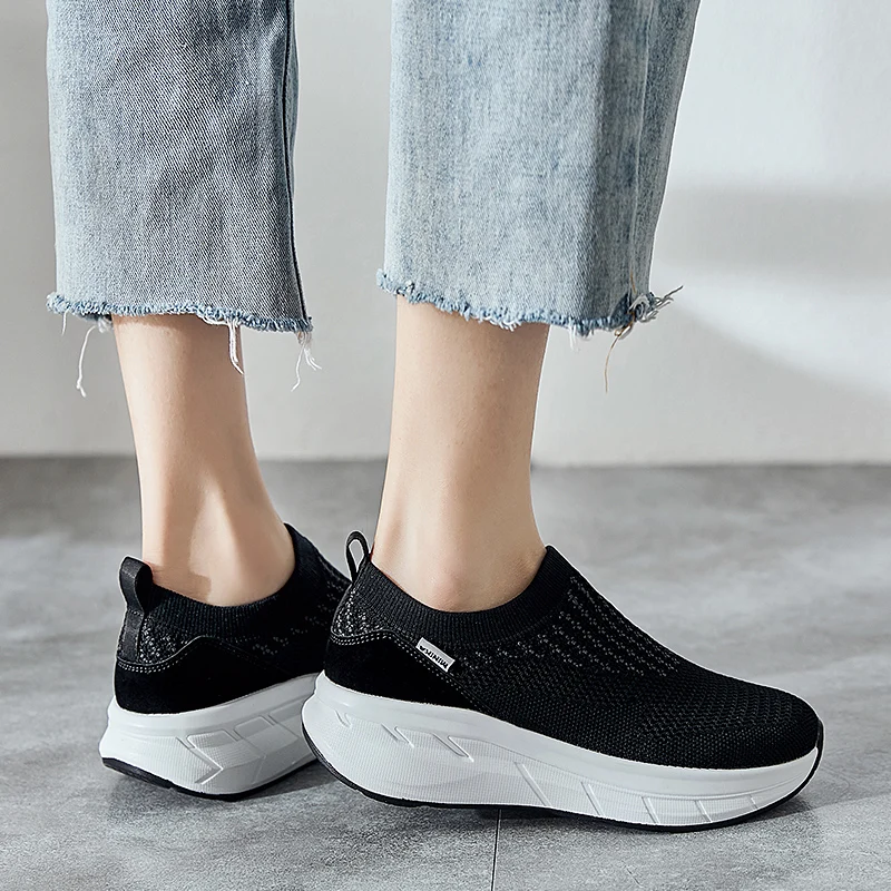 Spring Autumn Women Shoes Air Cushion Breathable Mesh Rocking Shoes Soft Slip On Wedge Platform Sneakers Heighten Slimming Shoes