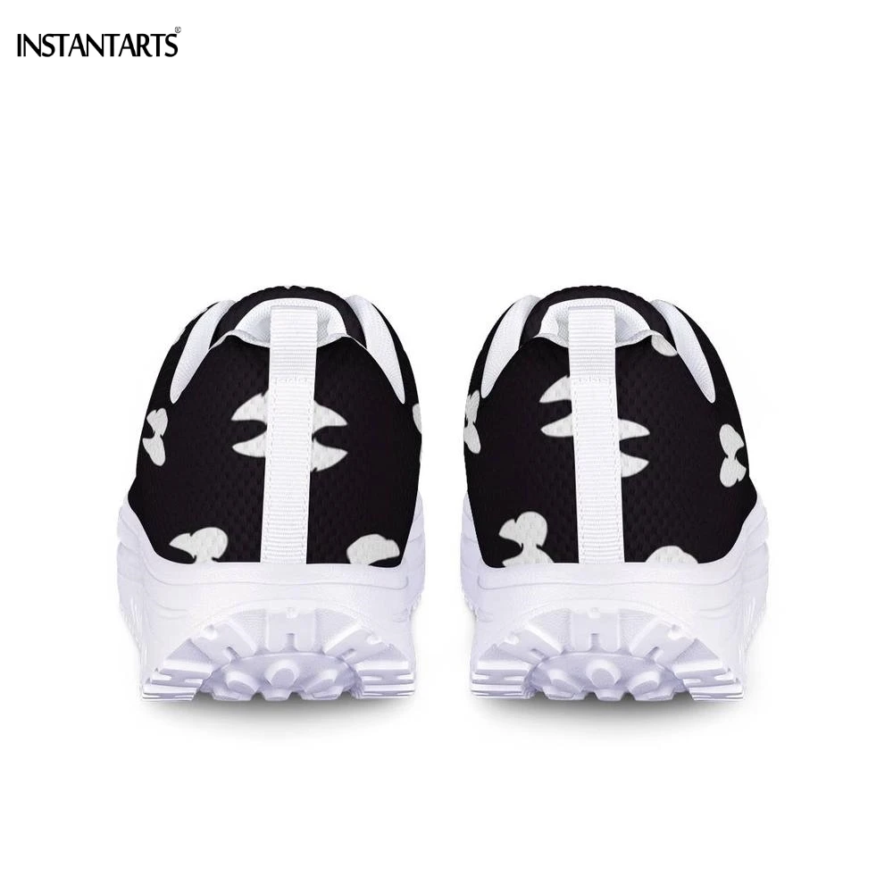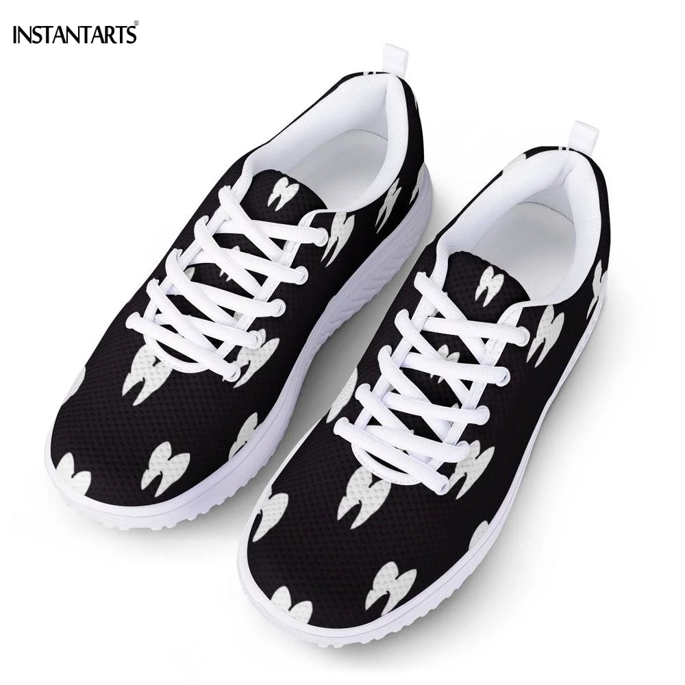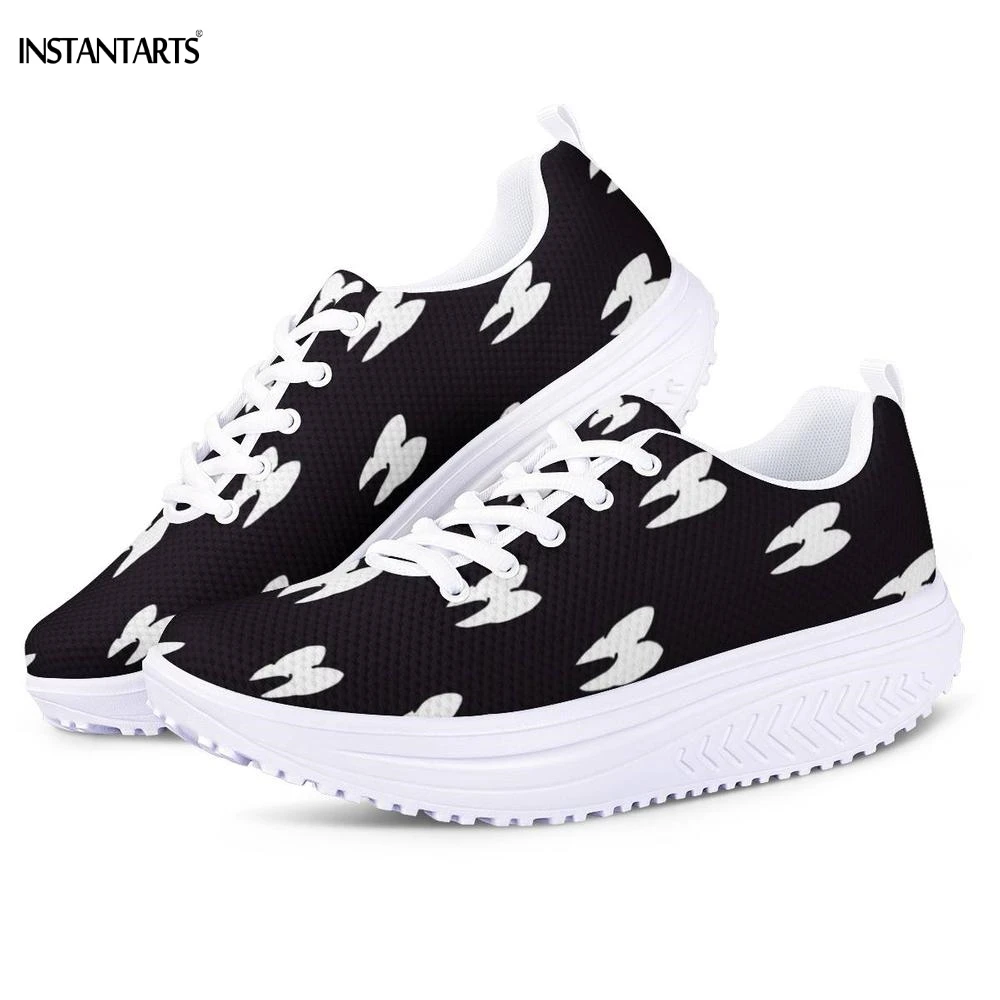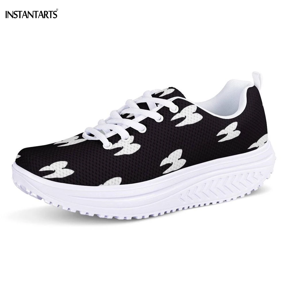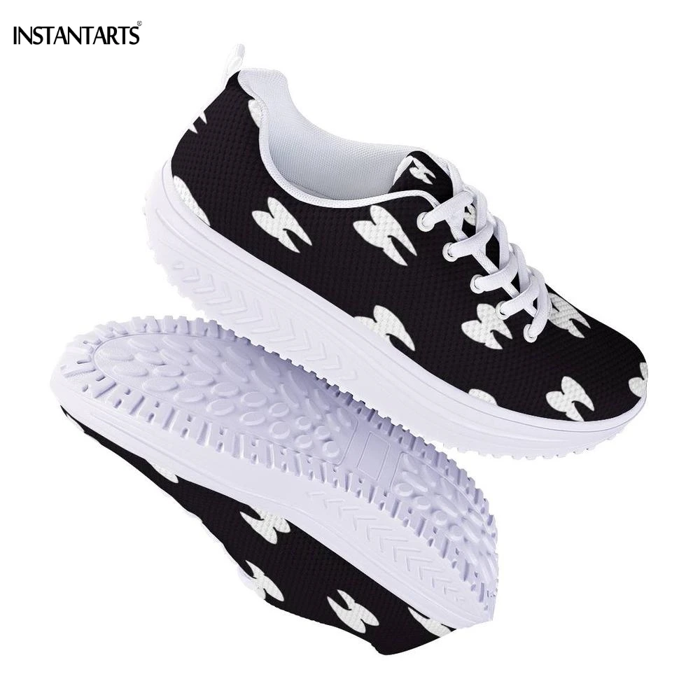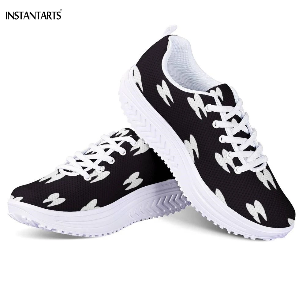 INSTANTARTS Cartoon 3D Teeth/Tooth Pattern Woman Black Fitness Swing Shoes Breath Platform Wedge Sneakers Lady Shaping Shoes Gym