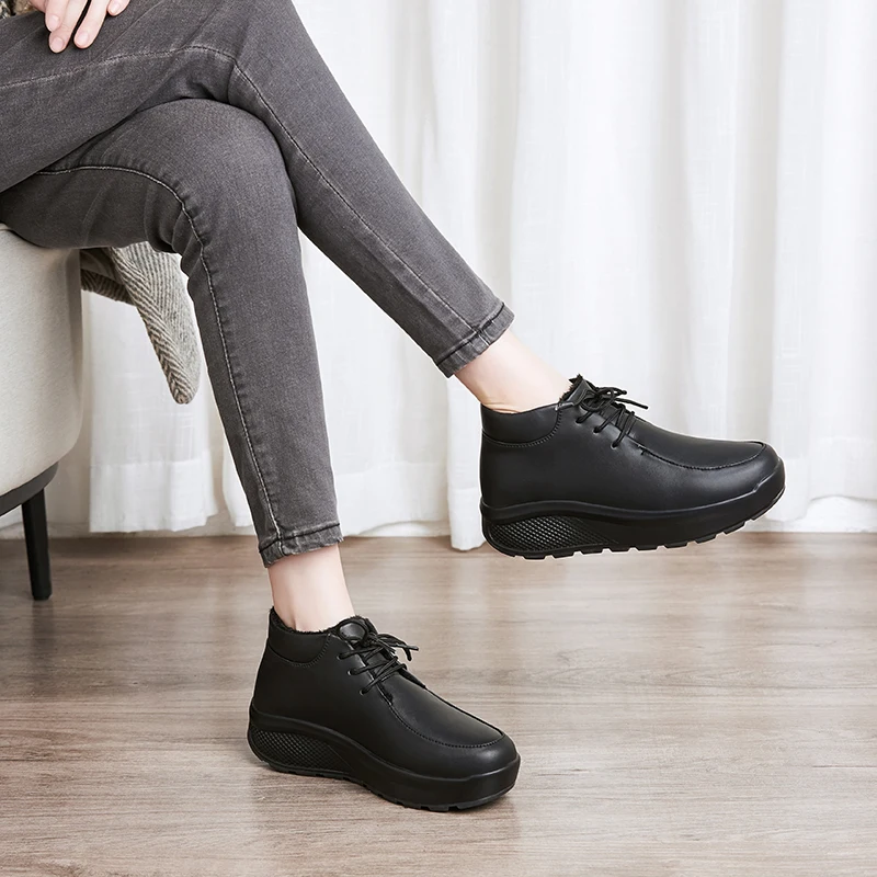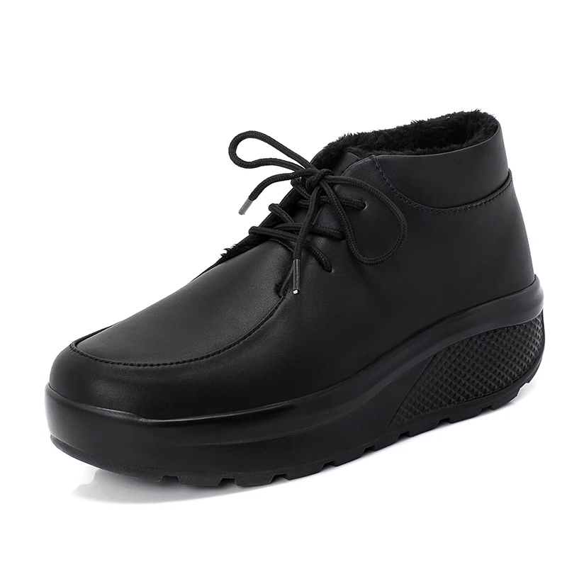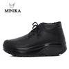 Minika Black Winter Warm Fitness Women Toning Shoes 4.5 CM Thick Soles PU Lace Up Women Sneakers Girls Slimming Shoes Walking