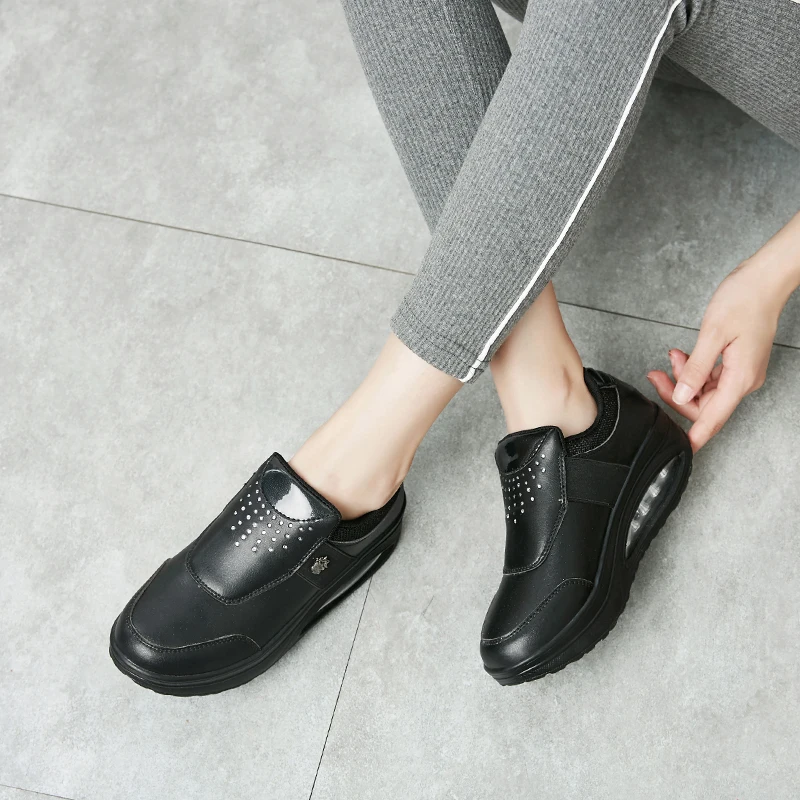 Women Slimming Shoes Air Sole Slip-on Sneakers 2019 New Wedge Height Increasing Female Toning Swing Sneakers