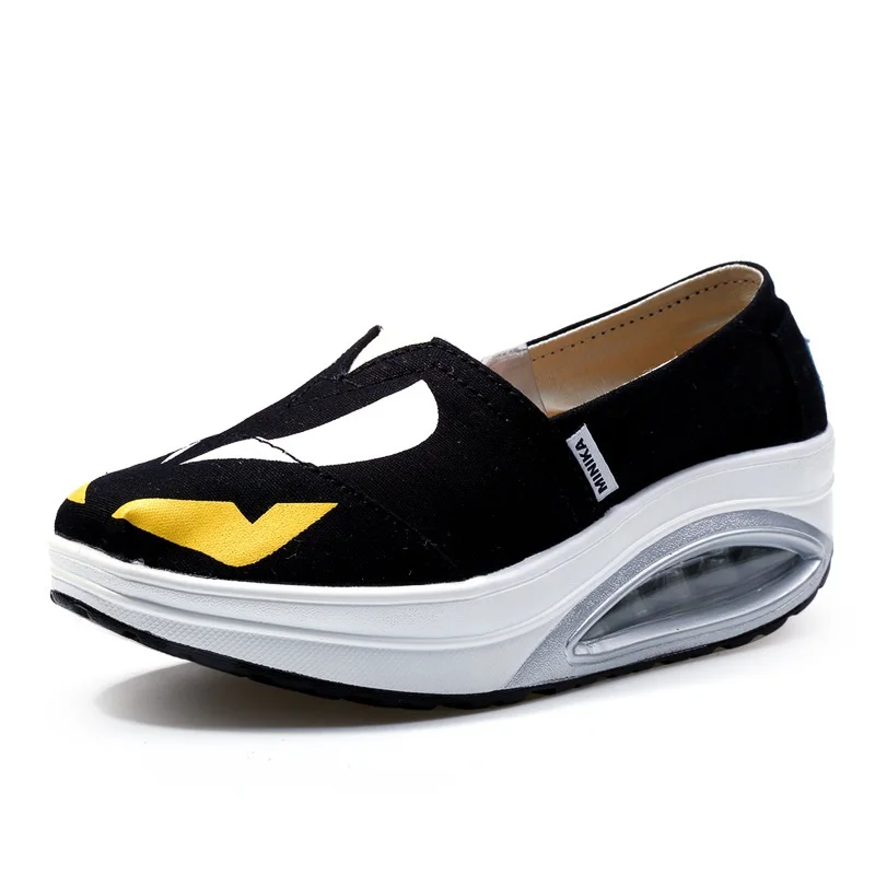 Canvas Breathable Women Toning Shoes Wedges Height Increased Loss Weight Swing Shoes Low Wedges Massage Shoes AA11011