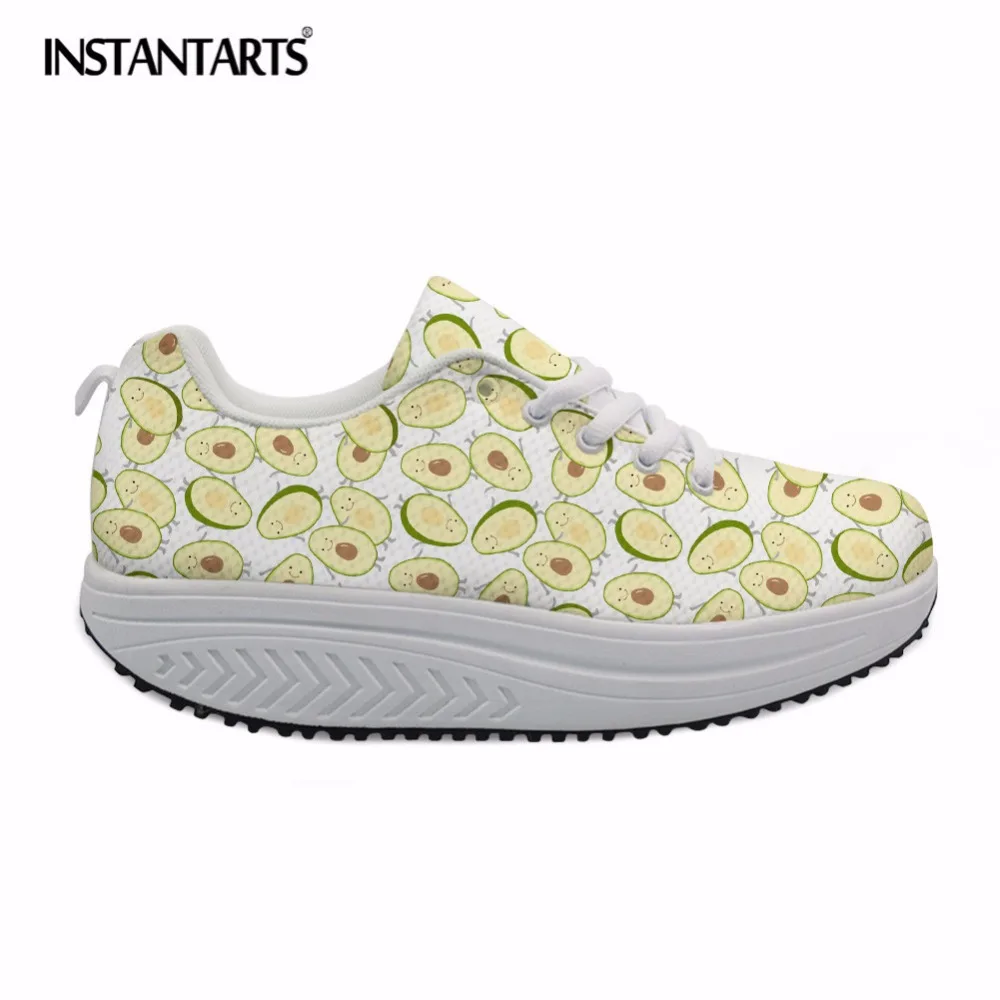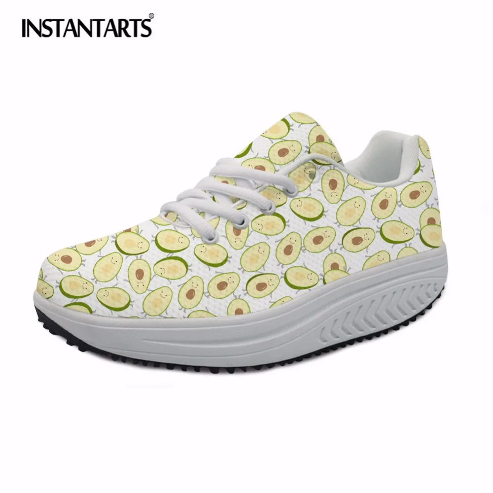 INSTANTARTS Avocado Print Women Sport Toning Shoes Height Increasing Platform Wedge Swing Shoes for Ladies Slimming Fitness Shoe