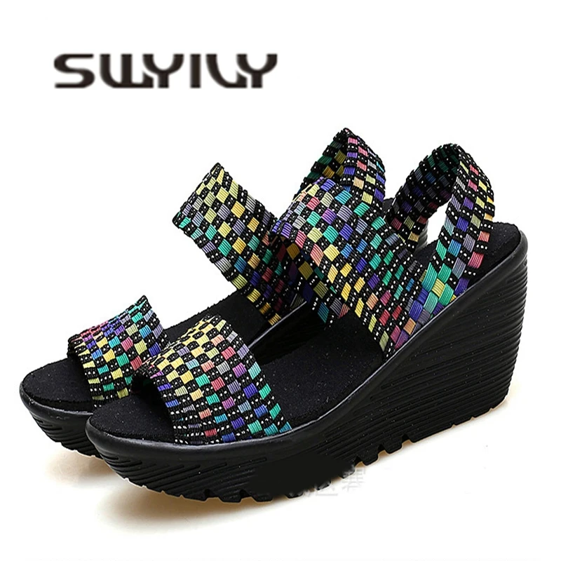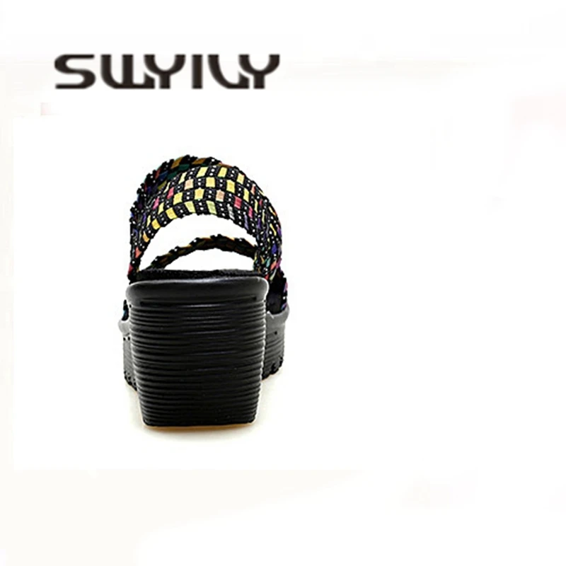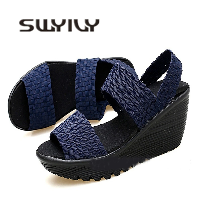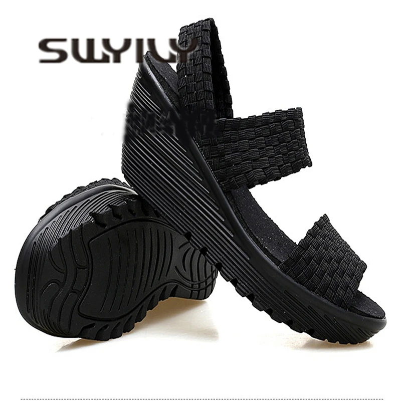 SWYIVY Women Slimming Sandals Platform Hand-woven 2018 Summer Large Size Height Increasing Comfortable Female Toning Shoes