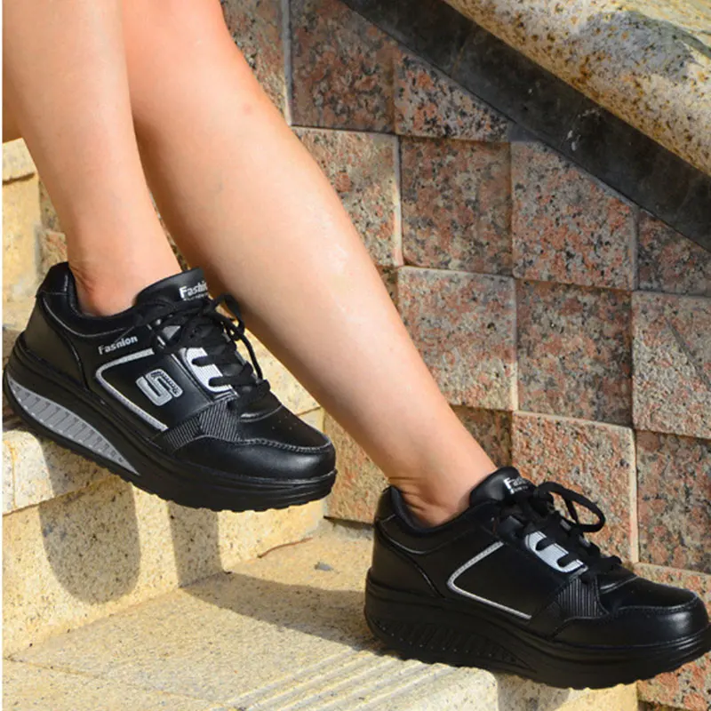 Women Leather Slimming Sneakers Platform Toning Wedge Shoes Woman Light Weight Swing Sports Shoes Sneakers #B2481Buy Now On Aliexpress