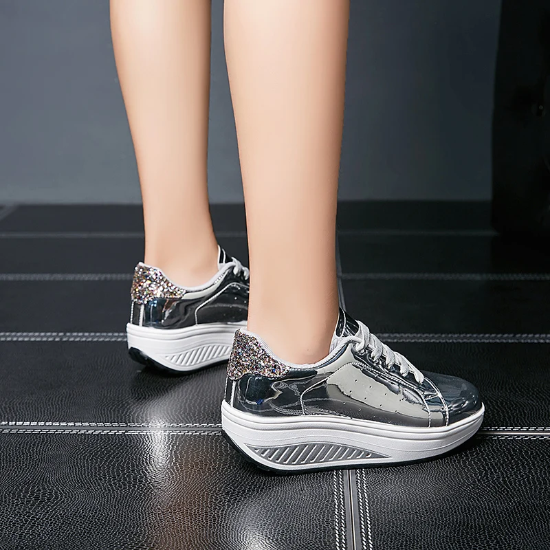 Best Price Comparison With Women Slimming Shoes Female Breathable Lace Up Sneakers 2019 New Fashion Wedge Height Increasing Female Toning Swing Shoes