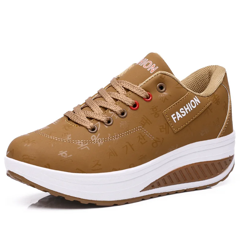 PU Lacing Women Toning Shoes 5.5CM Thick Soles Height Increased Breathable Wedges Swing Sneakers 2017 New Autumn Slmming Shoes