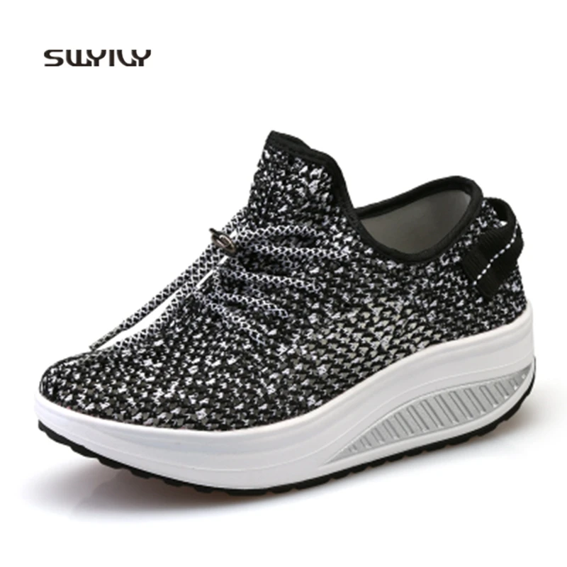 SWYIVY Women Sneakers Slip-on Platform Toning Shoes Women 2018 New Super Light Breathable Height Increasing Women Swing Shoes