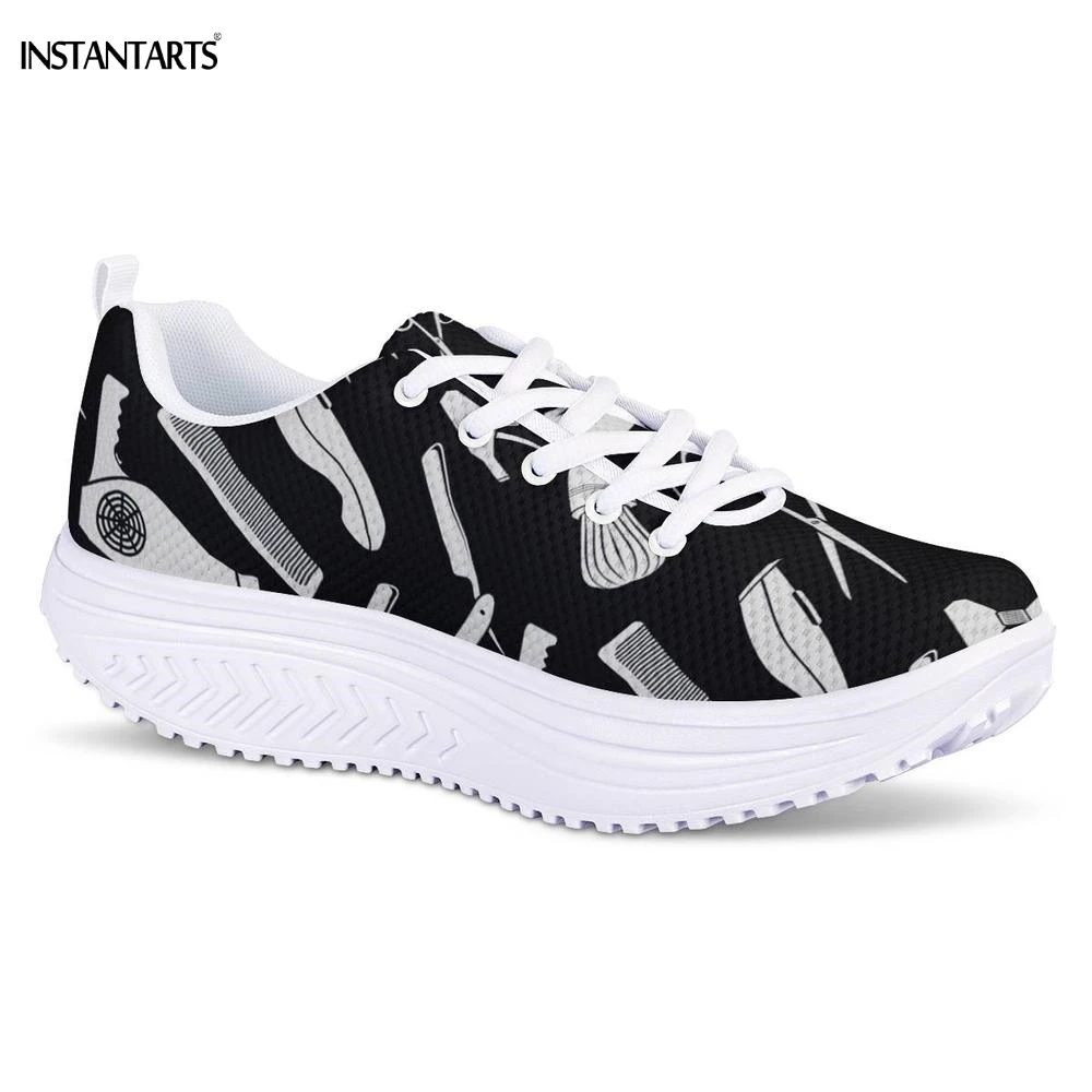 Best Price Comparison With INSTANTARTS 3D Barber/Hair Stylist Pattern Women Black Swing Shoes Outdoor Female Fitness Shaping Shoes Platform Wedge Sneakers