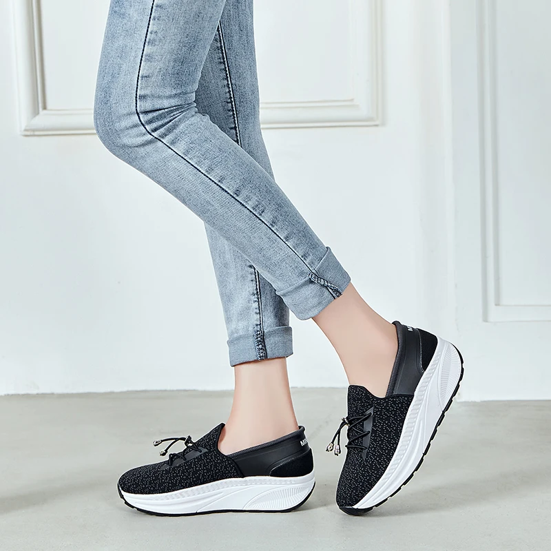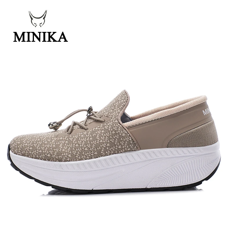 Minika Slimming Shoes Women Summer Breathable Slip On Sport Shoes Female Fitness Swing Platform Wedge Shoes Lady Walking Sneaker