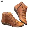 Women's PU Leather Ankle Boots Women Autumn Winter Cross Strappy Vintage Women Punk Boots Flat Ladies Shoes Woman Botas Mujer