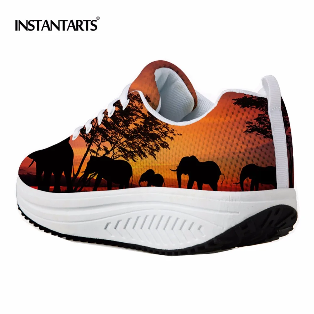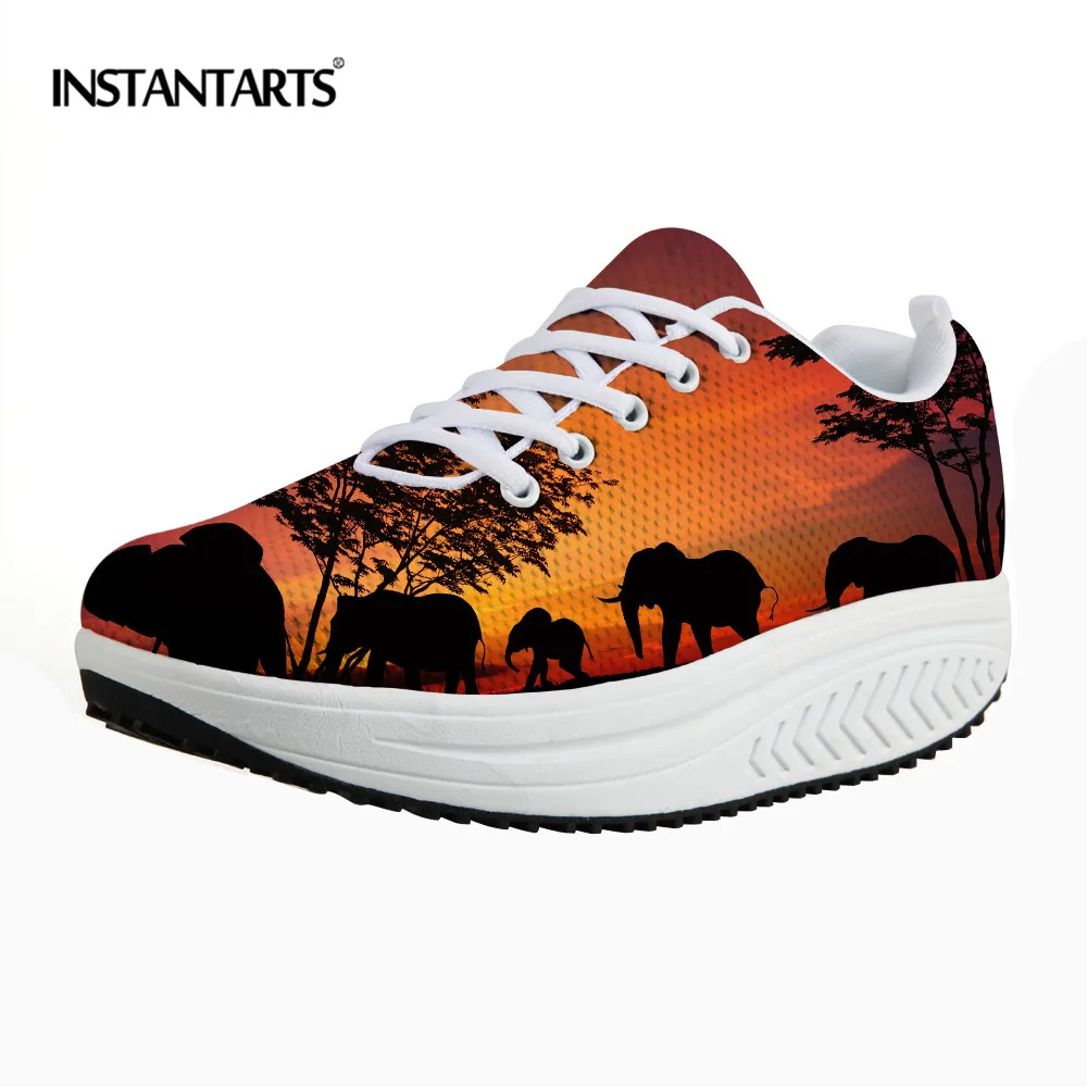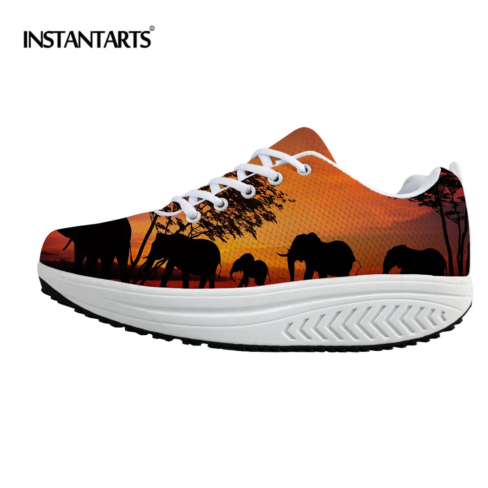 INSTANTARTS Women Platform Fitness Toning Shoes Female Sunset Animal Printed Sports Slimming Shoes Lose Weight Body Shaping Shoe
