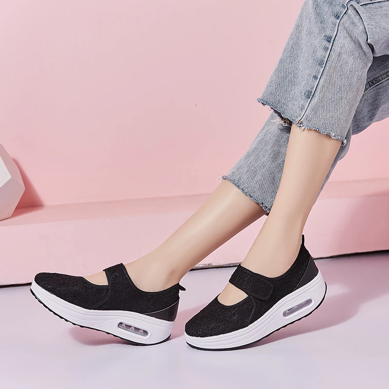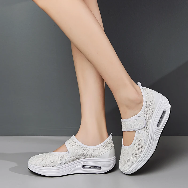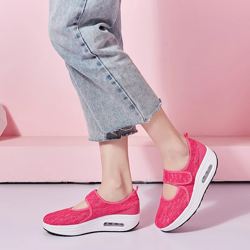 Women Toning Shoes Breathable Lace Platform Swing Shoes New Summer Hollow Ultra-light Female Hook & Loop Lazy Slimming Shoes