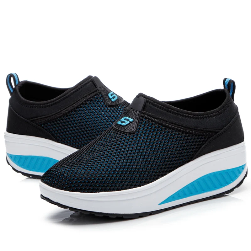2018 New Style Women's Swing Fitness Walking Sneakers Woman Wedges Platform Shoes Summer Mesh Breathable Slip On Shoes